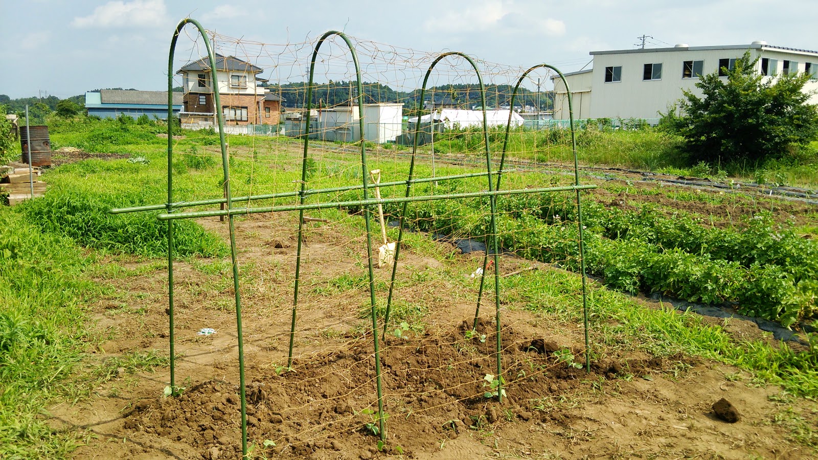 どんぐりファームに棚を作ってできた苗を植え付けました^^