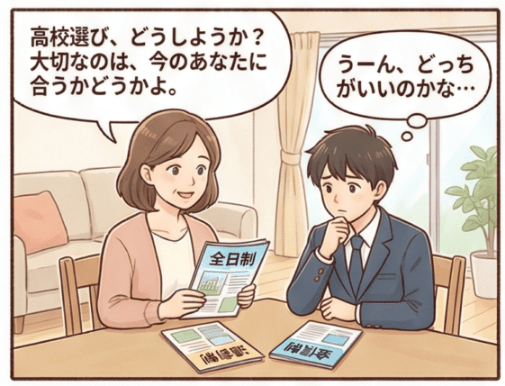 「通信制高校がいい」「全日制高校がいい」と結論を急ぐのではなく、