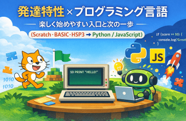 発達特性×プログラミング言語:楽しく始めやすい入口(Scratch・BASIC・HSP3)と次の一歩(Python/JavaScript)